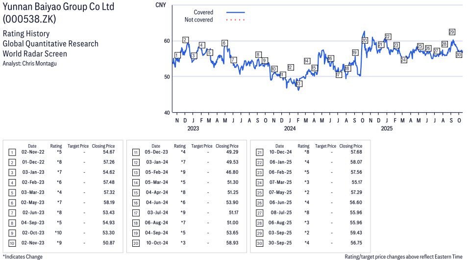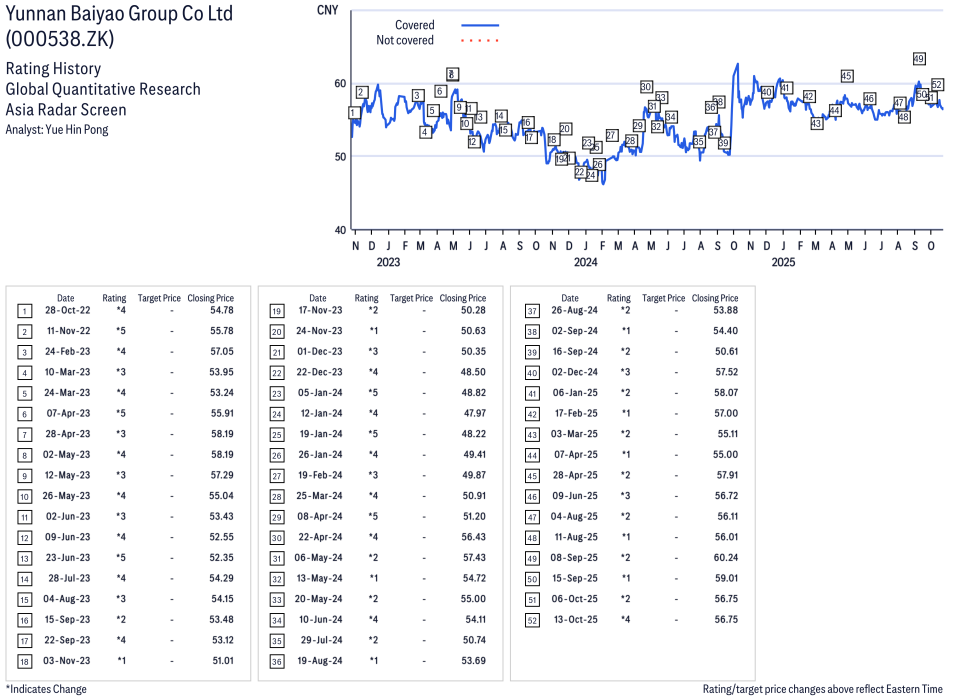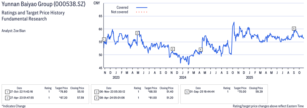 Yunnan Baiyao Group ( 000538.SZ ) Disclosure / Price Chart(s) / Valuation & Risk