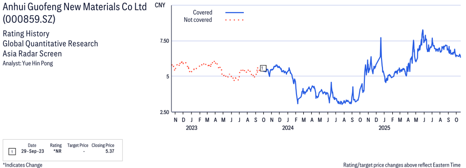 Anhui Guofeng New Materials Co Ltd ( 000859.SZ ) Disclosure / Price Chart(s)