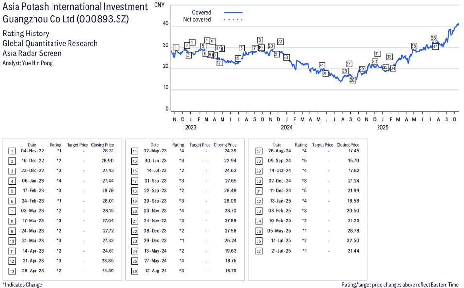 Asia Potash International Investment Guangzhou Co Ltd ( 000893.SZ ) Disclosure / Price Chart(s)