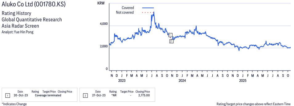 Aluko Co Ltd ( 001780.KS ) Disclosure / Price Chart(s)