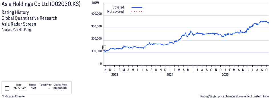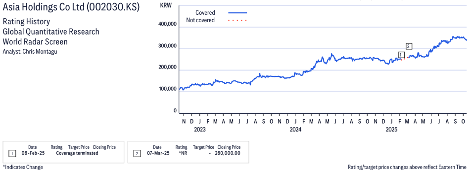 Asia Holdings Co Ltd ( 002030.KS ) Disclosure / Price Chart(s)