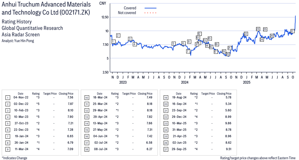Anhui Truchum Advanced Materials and Technology Co Ltd ( 002171.SZ ) Disclosure / Price Chart(s)