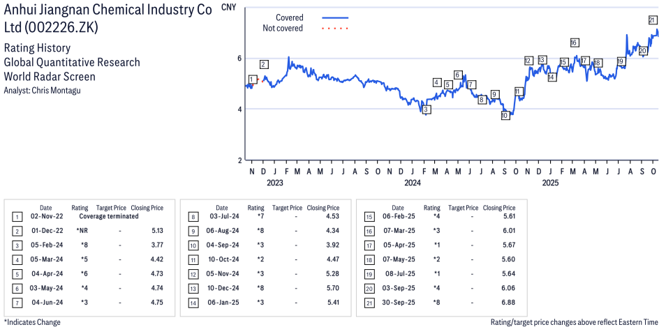 Anhui Jiangnan Chemical Industry Co Ltd ( 002226.SZ ) Disclosure / Price Chart(s)