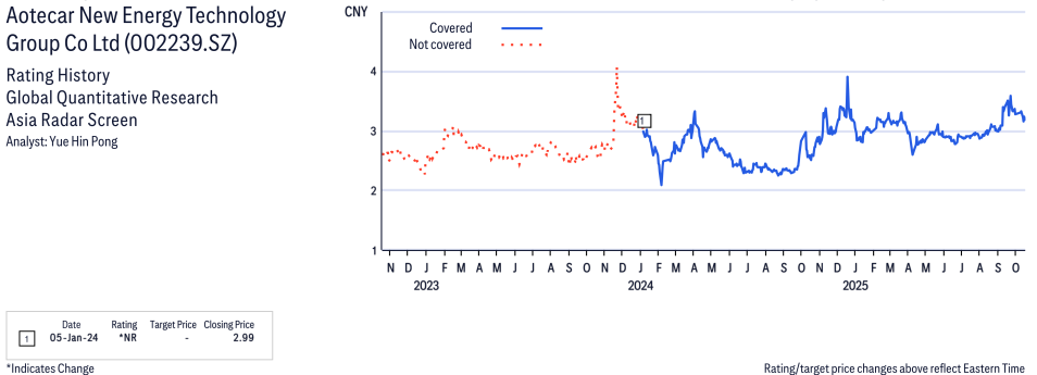 Aotecar New Energy Technology Group Co Ltd ( 002239.SZ ) Disclosure / Price Chart(s)