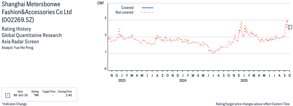 Shanghai Metersbonwe Fashion&Accessories Co Ltd ( 002269.SZ ) Disclosure / Price Chart(s)
