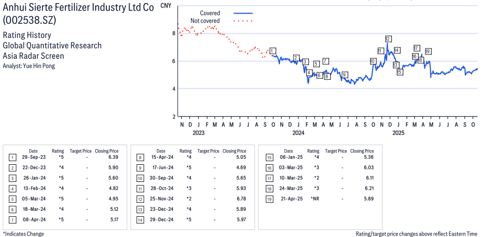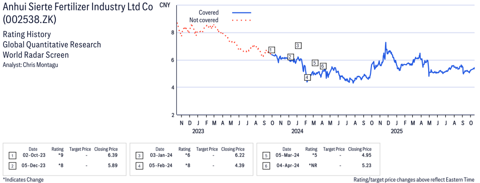 Anhui Sierte Fertilizer Industry Ltd Co ( 002538.SZ ) Disclosure / Price Chart(s)