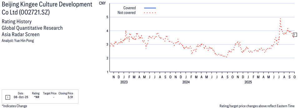 Beijing Kingee Culture Development Co Ltd ( 002721.SZ ) Disclosure / Price Chart(s)