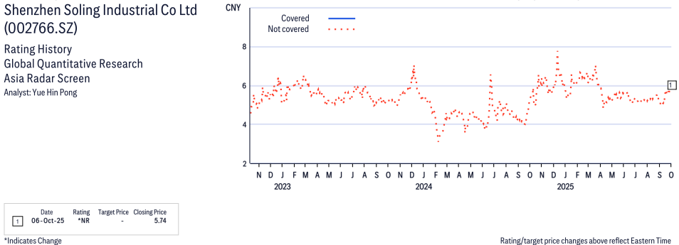 Shenzhen Soling Industrial Co Ltd ( 002766.SZ ) Disclosure / Price Chart(s)