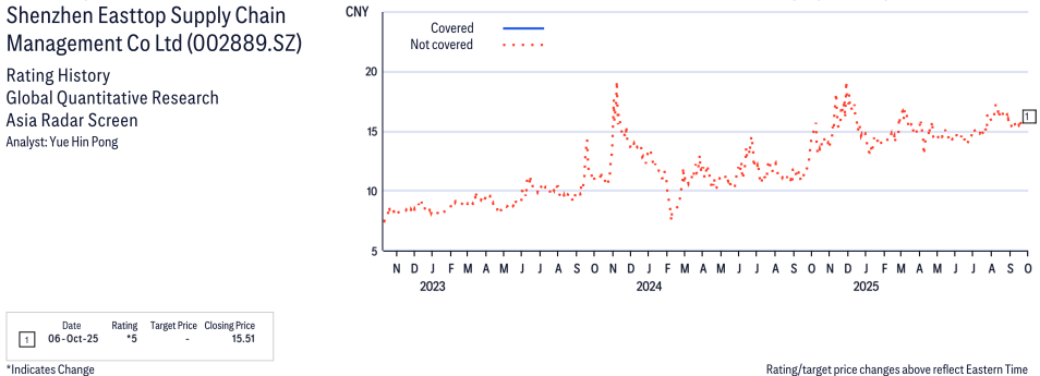Shenzhen Easttop Supply Chain Management Co Ltd ( 002889.SZ ) Disclosure / Price Chart(s)