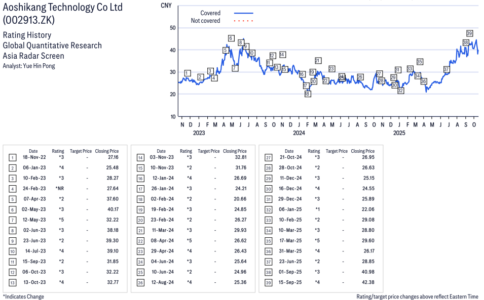 Aoshikang Technology Co Ltd ( 002913.SZ ) Disclosure / Price Chart(s)