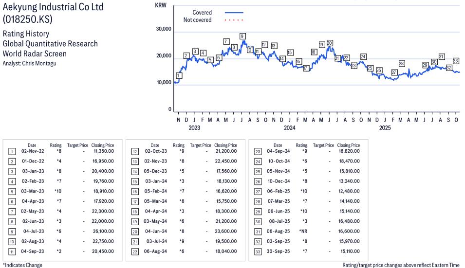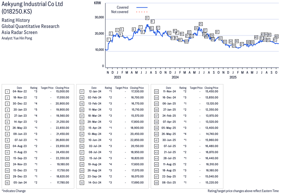 Aekyung Industrial Co Ltd ( 018250.KS ) Disclosure / Price Chart(s)