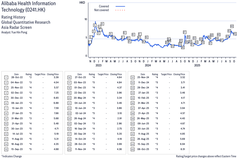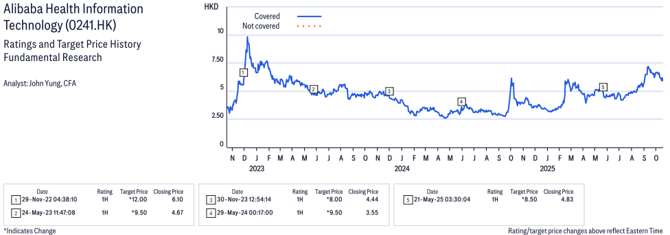 Alibaba Health Information Technology ( 0241.HK ) Disclosure / Price Chart(s) / Valuation & Risk