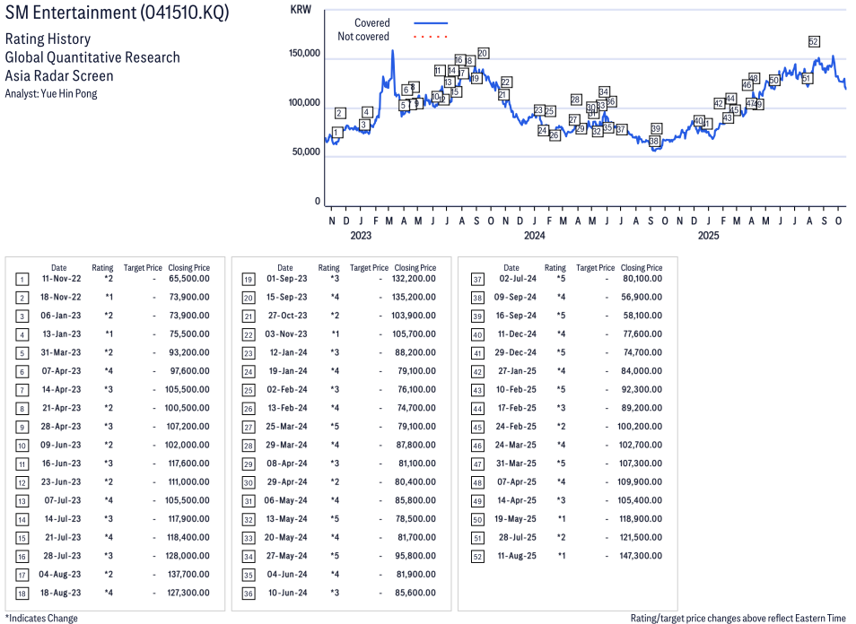 SM Entertainment ( 041510.KQ ) Disclosure / Price Chart(s) / Valuation & Risk