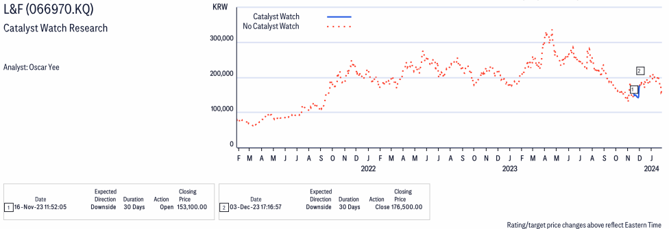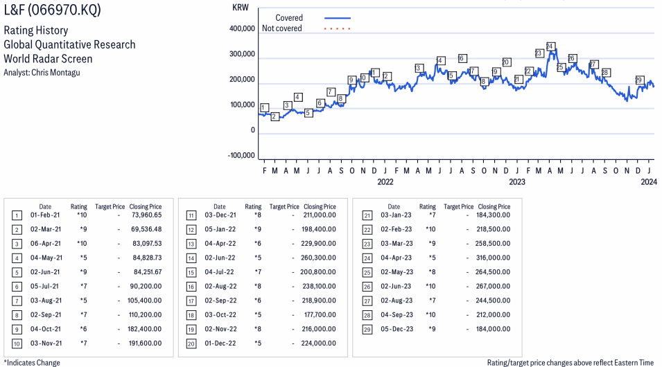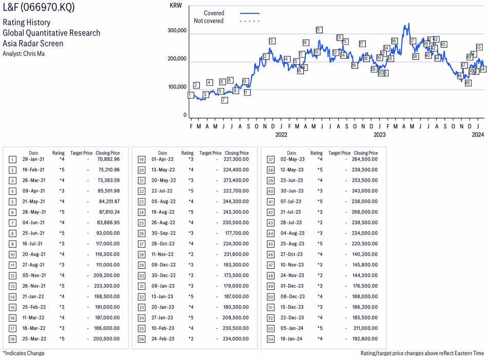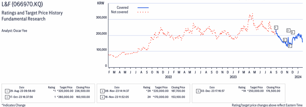 L&F ( 066970.KQ ) Disclosure / Price Chart(s) / Valuation & Risk