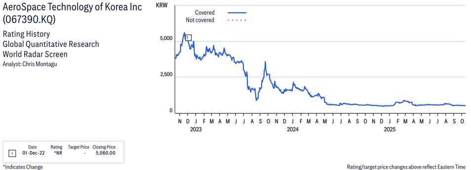 AeroSpace Technology of Korea Inc ( 067390.KQ ) Disclosure / Price Chart(s)