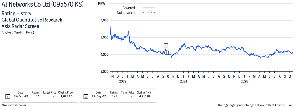 AJ Networks Co Ltd ( 095570.KS ) Disclosure / Price Chart(s)