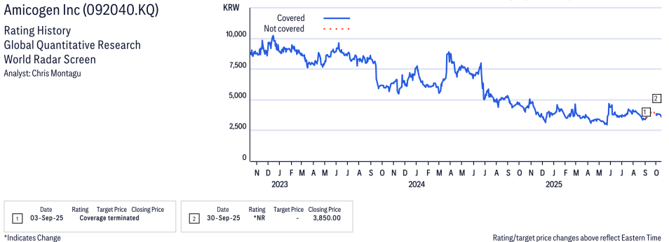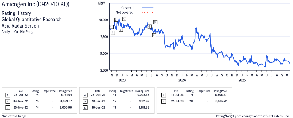 Amicogen Inc ( 092040.KQ ) Disclosure / Price Chart(s)
