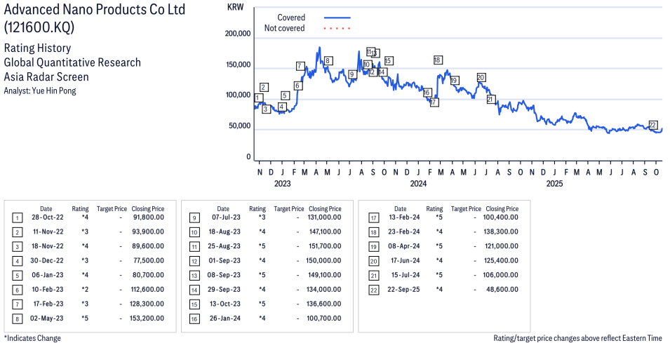 Advanced Nano Products Co Ltd ( 121600.KQ ) Disclosure / Price Chart(s)