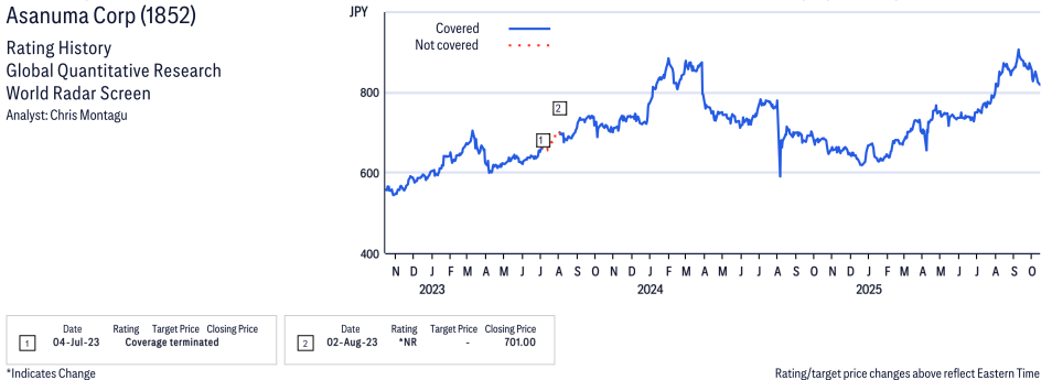 Asanuma Corp ( 1852 ) Disclosure / Price Chart(s)
