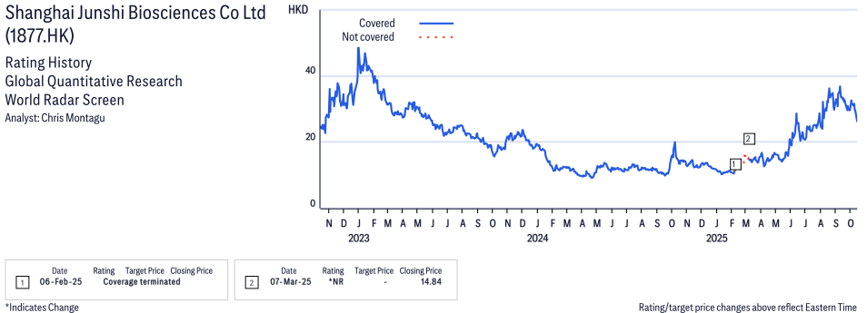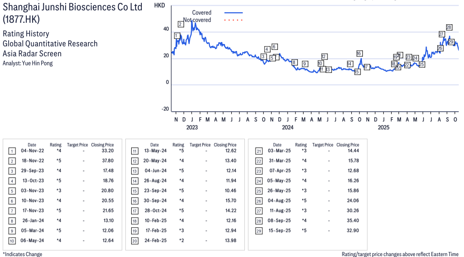 Shanghai Junshi Biosciences ( 1877.HK ) Disclosure / Price Chart(s) / Valuation & Risk
