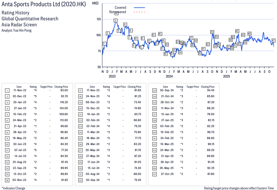 Anta Sports Products ( 2020.HK ) Disclosure / Price Chart(s) / Valuation & Risk
