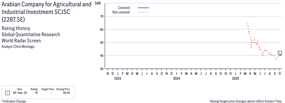 Arabian Company for Agricultural and Industrial Investment SCJSC ( 2287.SE ) Disclosure / Price Chart(s)