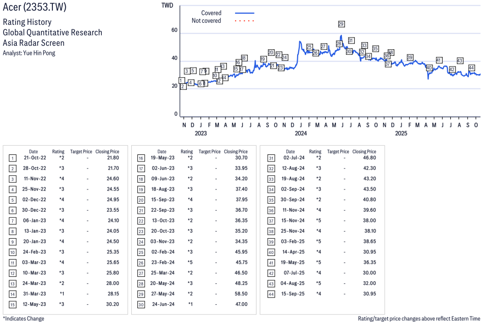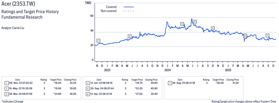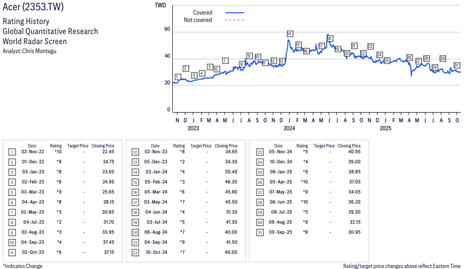 Acer ( 2353.TW ) Disclosure / Price Chart(s) / Valuation & Risk