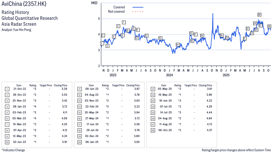 AviChina ( 2357.HK ) Disclosure / Price Chart(s) / Valuation & Risk