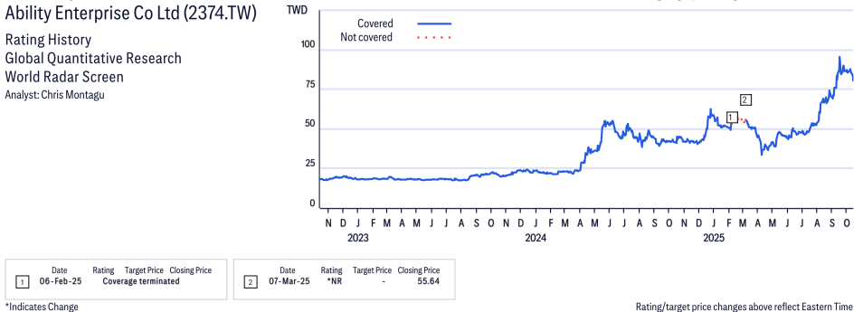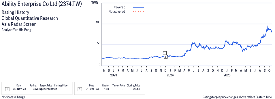Ability Enterprise Co Ltd ( 2374.TW ) Disclosure / Price Chart(s)