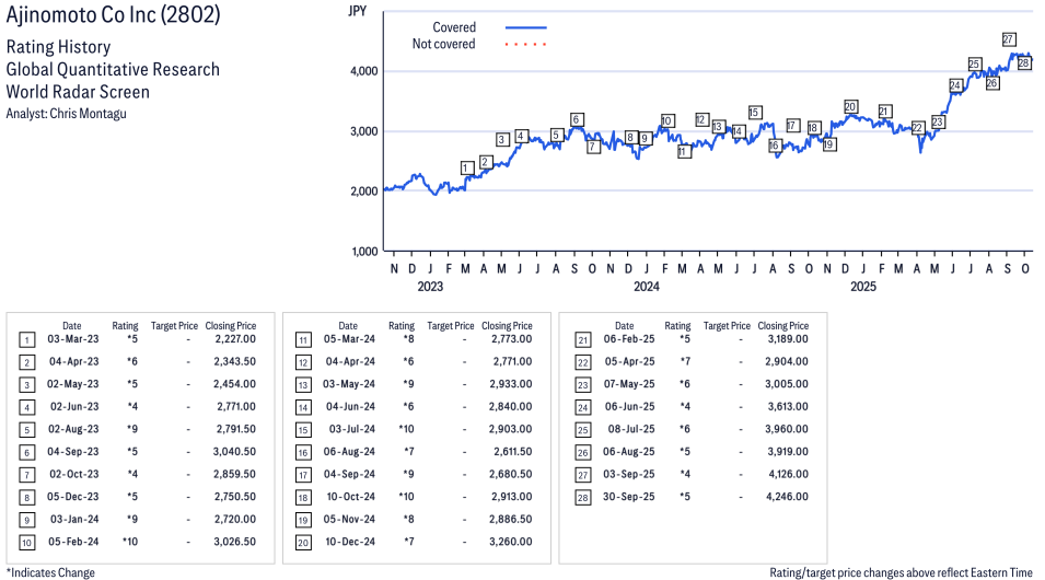 Ajinomoto ( 2802 ) Disclosure / Price Chart(s) / Valuation & Risk