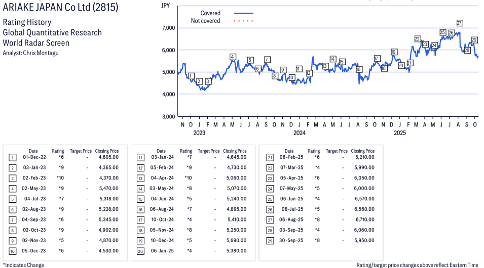 Ariake Japan ( 2815 ) Disclosure / Price Chart(s)