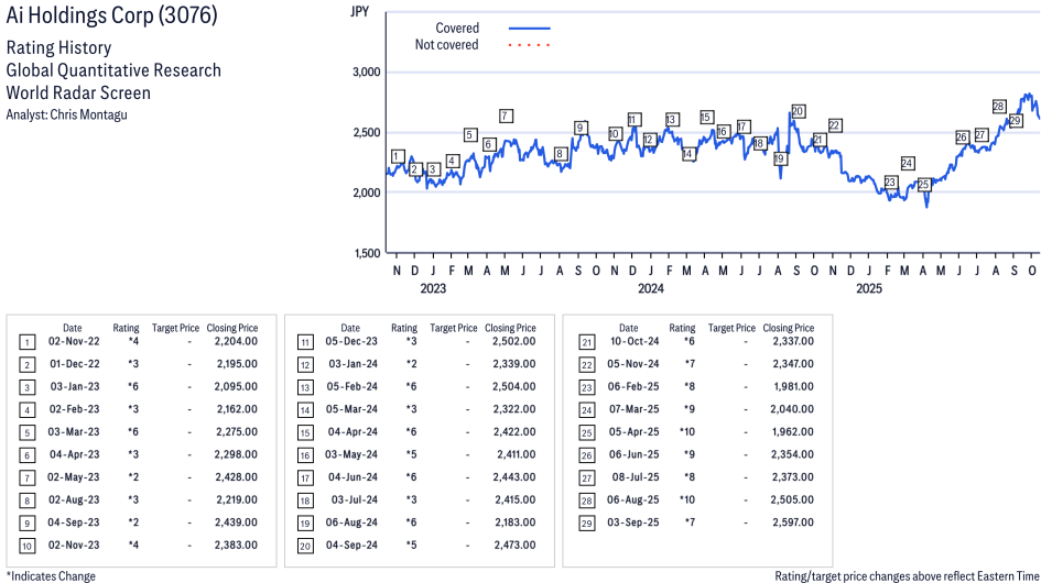 Ai Holdings Corp ( 3076 ) Disclosure / Price Chart(s)