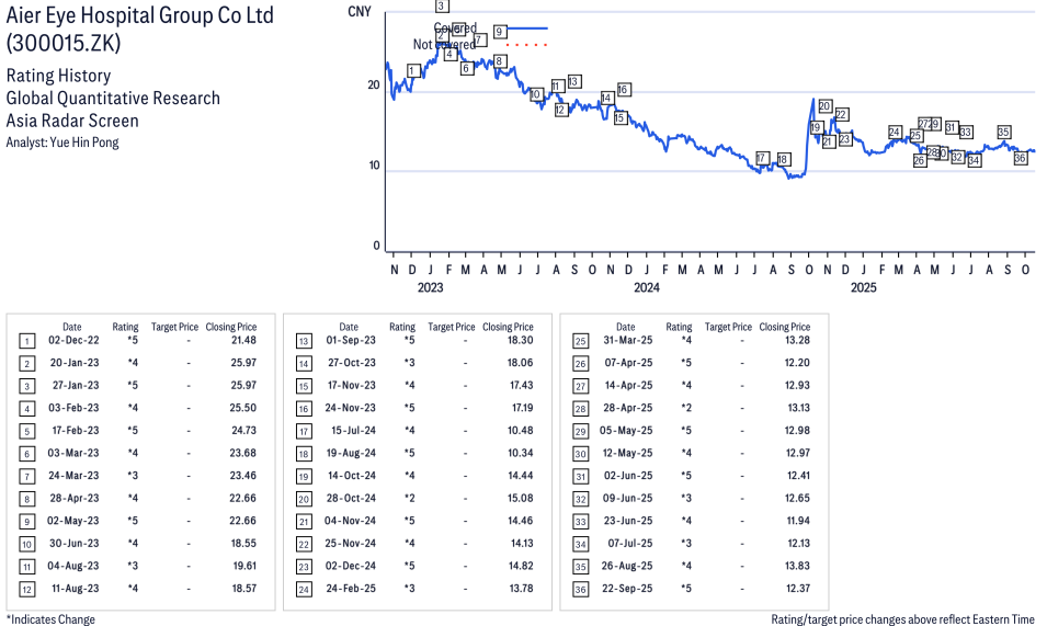 Aier Eye Hospital Group ( 300015.SZ ) Disclosure / Price Chart(s) / Valuation & Risk
