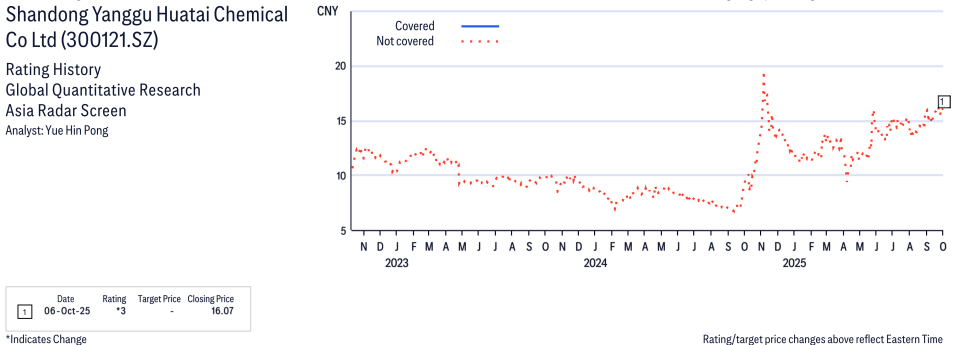 Shandong Yanggu Huatai Chemical Co Ltd ( 300121.SZ ) Disclosure / Price Chart(s)
