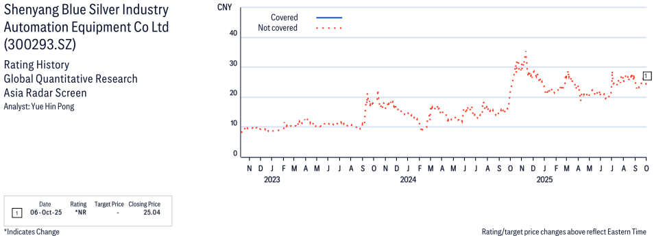 Shenyang Blue Silver Industry Automation Equipment Co Ltd ( 300293.SZ ) Disclosure / Price Chart(s)