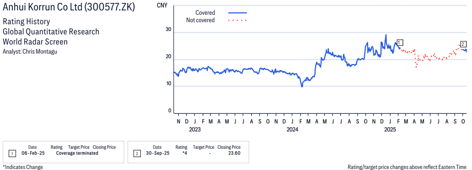 Anhui Korrun Co Ltd ( 300577.SZ ) Disclosure / Price Chart(s)