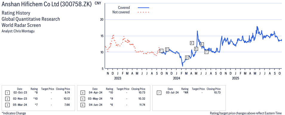 Anshan Hifichem Co Ltd ( 300758.SZ ) Disclosure / Price Chart(s)