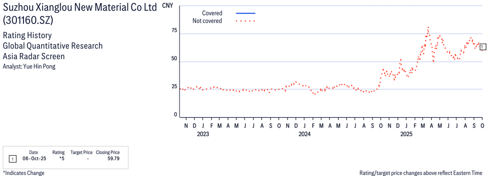 Suzhou Xianglou New Material Co Ltd ( 301160.SZ ) Disclosure / Price Chart(s)