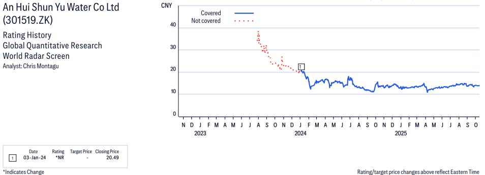 An Hui Shun Yu Water Co Ltd ( 301519.SZ ) Disclosure / Price Chart(s)