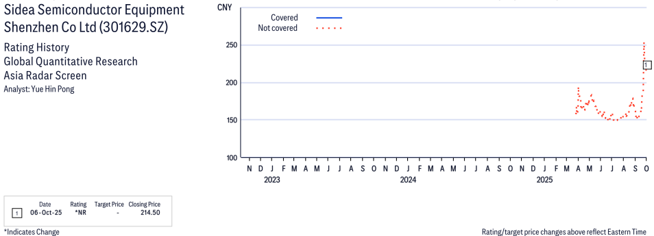 Sidea Semiconductor Equipment Shenzhen Co Ltd ( 301629.SZ ) Disclosure / Price Chart(s)