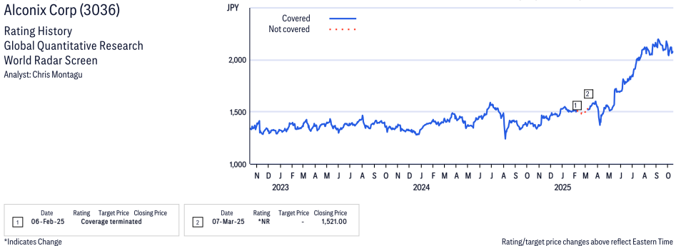 Alconix Corp ( 3036 ) Disclosure / Price Chart(s)