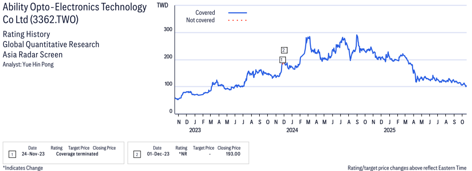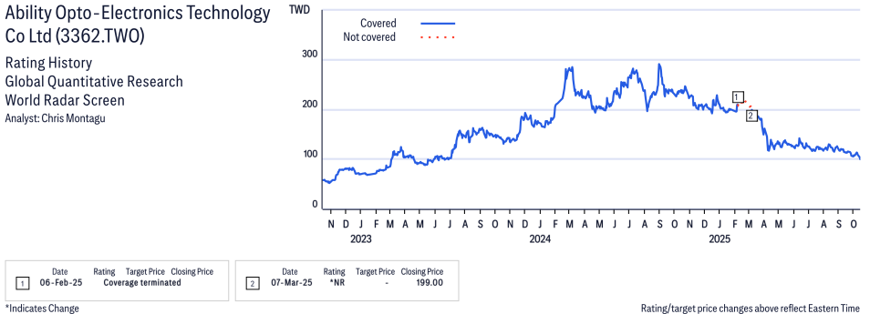 Ability Opto-Electronics Technology Co Ltd ( 3362.TWO ) Disclosure / Price Chart(s)