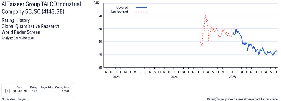 Al Taiseer Group TALCO Industrial Company SCJSC ( 4143.SE ) Disclosure / Price Chart(s)