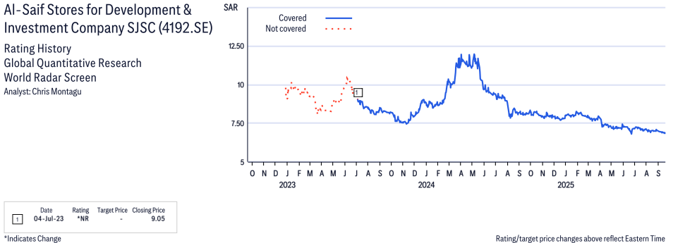 Al-Saif Stores for Development & Investment Company SJSC ( 4192.SE ) Disclosure / Price Chart(s)