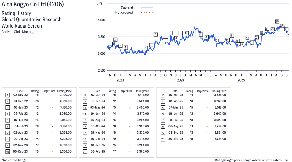 Aica Kogyo Co Ltd ( 4206 ) Disclosure / Price Chart(s)