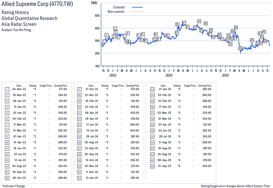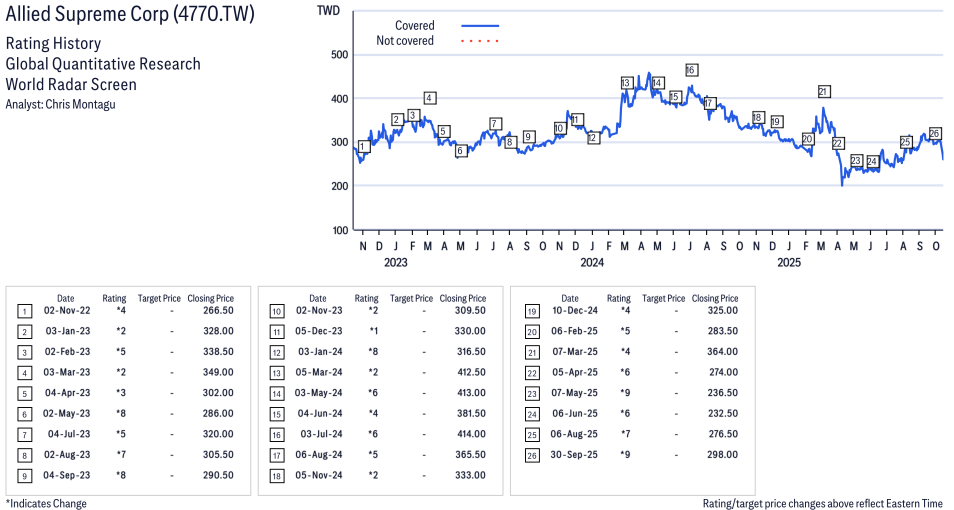 Allied Supreme Corp ( 4770.TWO ) Disclosure / Price Chart(s)