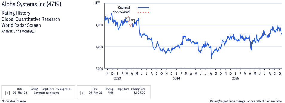 Alpha Systems Inc ( 4719 ) Disclosure / Price Chart(s)
