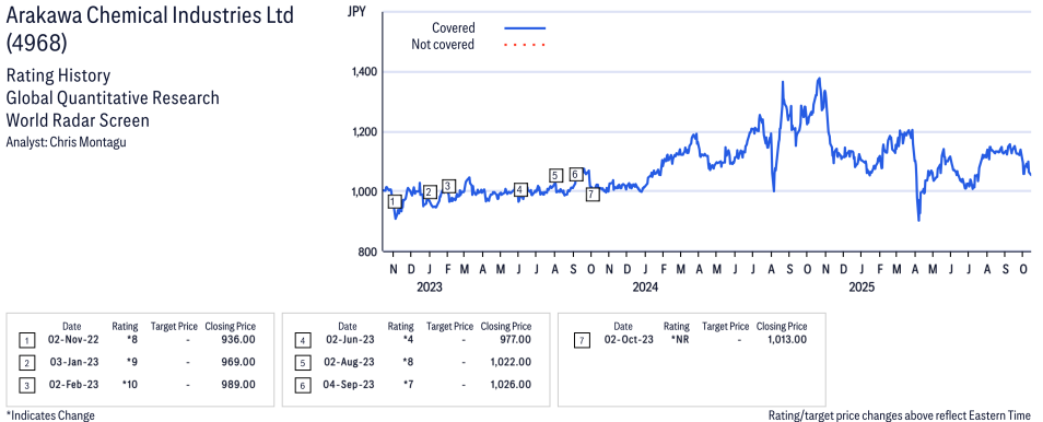 Arakawa Chemical Industries Ltd ( 4968 ) Disclosure / Price Chart(s)
