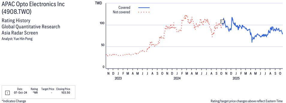 APAC Opto Electronics Inc ( 4908.TWO ) Disclosure / Price Chart(s)