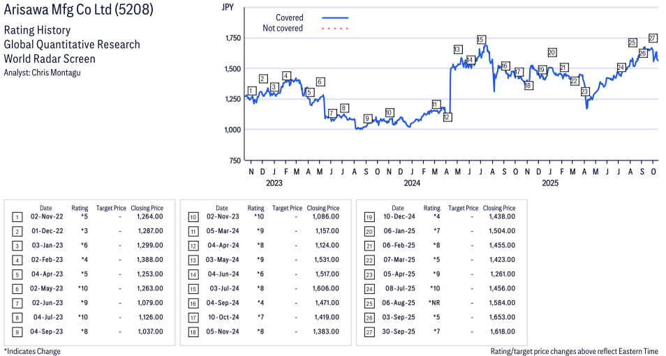 Arisawa Mfg Co Ltd ( 5208 ) Disclosure / Price Chart(s)